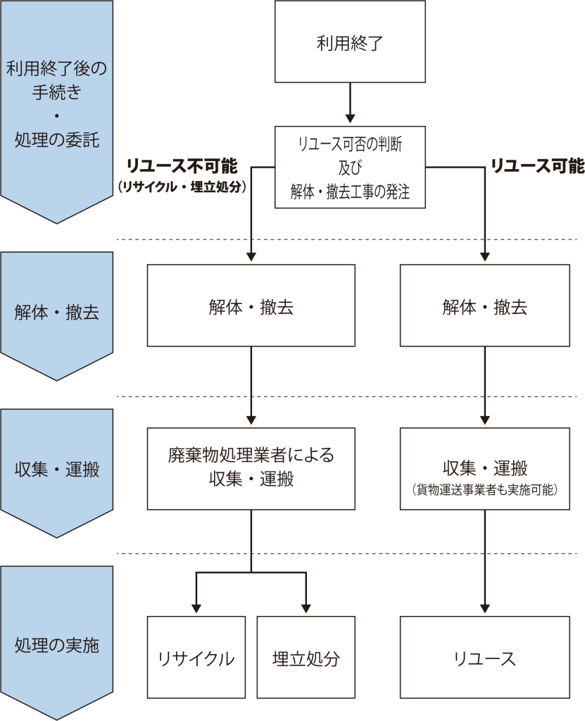 廃棄される太陽光パネルは、パネルメーカー・ 販売会社 ・ 発電事業者・電気工事会社・解体工 事会社・一般家庭などから、 リサイクル処理業 者へ集められます。 まず、 リユースできるものと、 リサイクルするものとに選別します。